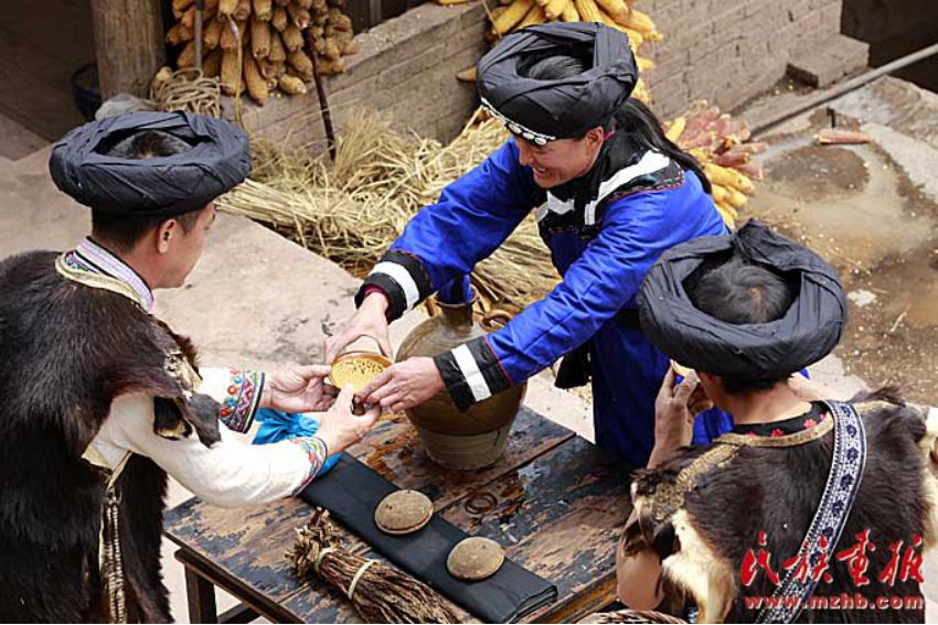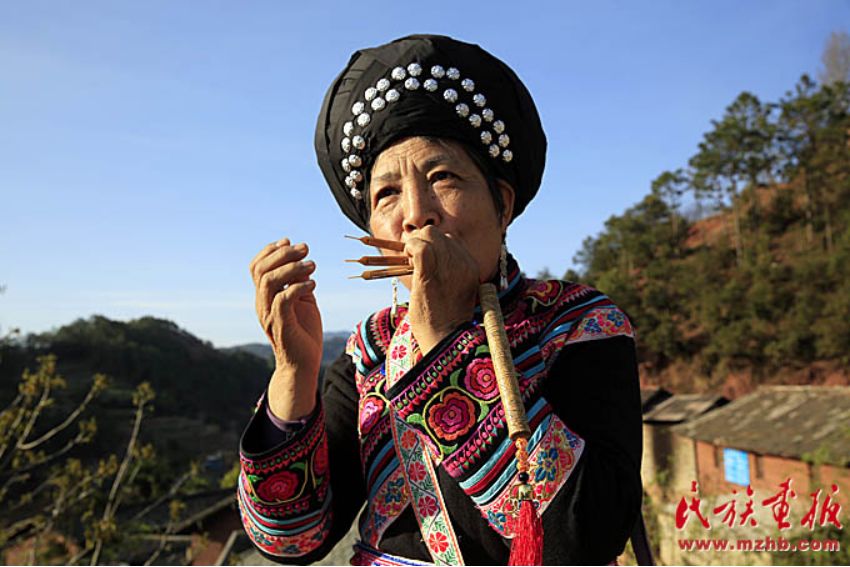 迎親路上,一位老婦吹奏起口弦