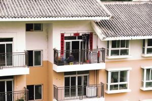 搬進(jìn)城中安置房后,在陽臺上依然制衣的婦女。