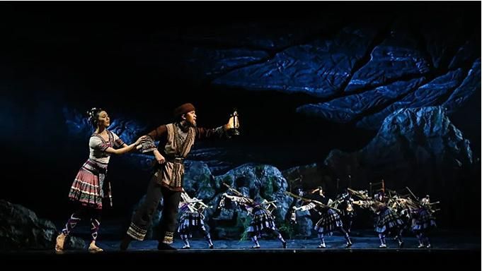 “花腰帶”既是精美的舞蹈道具,又是劇中人物情感的寄托,在整部舞劇中反復出現(xiàn)。特別是在雙人舞中,“花腰帶”將人物間無形的關系幻化成有形的聯(lián)系。劇中的蘆笙舞段,不僅僅是男女之間情愛的表達,更突出表達了“開山人”為了讓窮鄉(xiāng)告別貧苦,為大愛舍小愛、努力奮斗的決心,以及對美好生活的向往。傳統(tǒng)民族舞蹈在這部劇中被賦予了不同的含義。