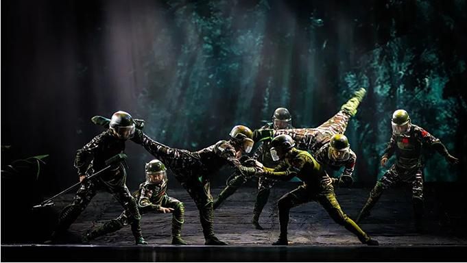 在舞劇敘事方式上,總編導之一董華興將民族性與現(xiàn)代性相互融合,嘗試了時空切割,段落重組,故事情節(jié)的倒敘、插敘,真實性與虛擬性相結合等方法。