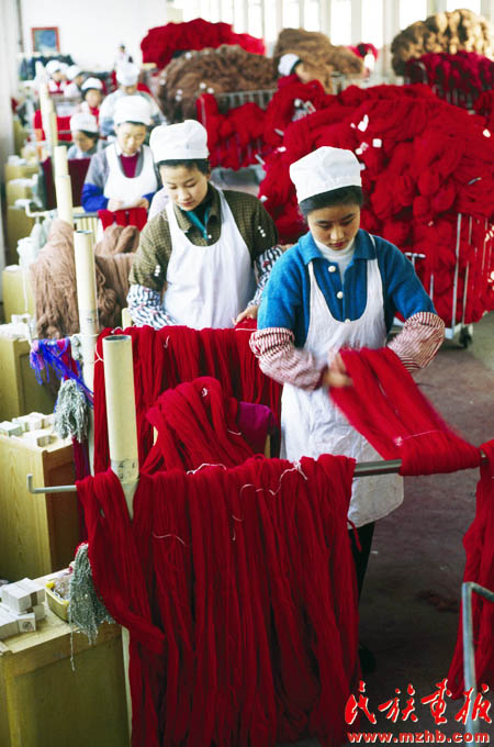 20世紀(jì)90年代初期,一些經(jīng)濟(jì)學(xué)家把戰(zhàn)略眼光投向資源豐厚的西部地區(qū),以促進(jìn)中西部省區(qū)經(jīng)濟(jì)協(xié)作為目的的隴海蘭新經(jīng)濟(jì)帶悄然成型,并輻射至西亞和歐洲。圖為跨入全國800家最大工業(yè)企業(yè)行列的甘肅省天水市甘肅絨線廠?!睹褡瀹媹蟆?994年第4期