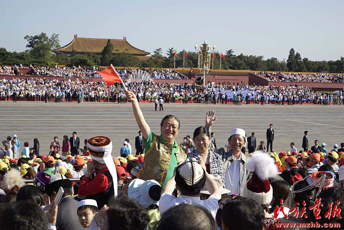 新中國成立以來,黨和國家始終堅持把馬克思主義民族理論同中國民族問題具體實際相結(jié)合,始終堅持把民族工作作為一項重大工作來抓,團(tuán)結(jié)帶領(lǐng)全國各族人民共同團(tuán)結(jié)奮斗,共同繁榮發(fā)展,開創(chuàng)了中國特色解決民族問題的正確道路,取得了舉世矚目的成就,積累了彌足珍貴的成功經(jīng)驗。2009年10月1日,在北京天安門廣場,20萬軍民以盛大的閱兵儀式和群眾游行歡慶新中國60華誕,圖為各民族學(xué)生參加“團(tuán)結(jié)奮進(jìn)”方陣群眾游行。《民族畫報》2009年第10期