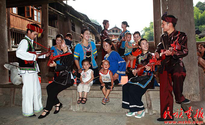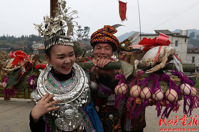 苗族姑娘韋夢迪說:“現(xiàn)在人們生活水平提高了,活動的內(nèi)容也越來越豐富?;顒蝇F(xiàn)場的姑娘若對小伙子有好感,跟過去情況也不一樣了,只要人好就行。”林洞村培科屯老人何桂姣也有一樣的感受:“記得以前小的時候‘打同年’就是吹蘆笙、跳踩堂舞、對歌,現(xiàn)在‘打同年’活動越來越豐富,還增加了籃球賽、拔河比賽、聯(lián)歡晚會等很多節(jié)目。”每年寒假回家都要參加“打同年”的廣西大學(xué)學(xué)生潘金鑫來自融水縣懷寶鎮(zhèn),他說:“通過開展吹蘆笙、踩堂舞、文藝表演等傳統(tǒng)文化活動,加深了大苗山黨群干群之間、村寨各族同胞之間的情誼,增進(jìn)了民族團(tuán)結(jié)。我自己也特別能感覺到家鄉(xiāng)的發(fā)展變化,這讓我很自豪。”