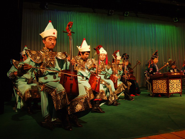 2016年9月,東歸烏蘭牧騎隊員在第五屆中國—亞歐博覽會上表演助興。悠揚的馬頭琴、精彩的舞蹈和蒙古長調(diào)引得展會商家和游客紛紛駐足觀賞拍照、流連忘返。11月27日,在烏魯木齊北京路匯嘉時代店和昌吉回族自治州匯嘉時代店,東歸烏蘭牧騎隊的40名專業(yè)演員,分別進行了兩場別開生面、富有濃郁民族風情的“快閃”表演。節(jié)奏明快、動感十足的蒙古民族音樂突然響起來,吸引眾人無不駐足觀賞。前兩分鐘是節(jié)奏歡快的草原歌曲,后兩分鐘又變成了莊嚴的經(jīng)典紅歌……演員們用馬頭琴、三弦、薩吾爾登、四胡等十幾種樂器演奏耳熟能詳?shù)母枨?,觀眾們紛紛拍照,錄視頻留念。歡快明朗、熱情洋溢的蒙古族舞蹈更是贏得觀眾陣陣掌聲,隨即興奮的觀眾與演員們一同舞起來。