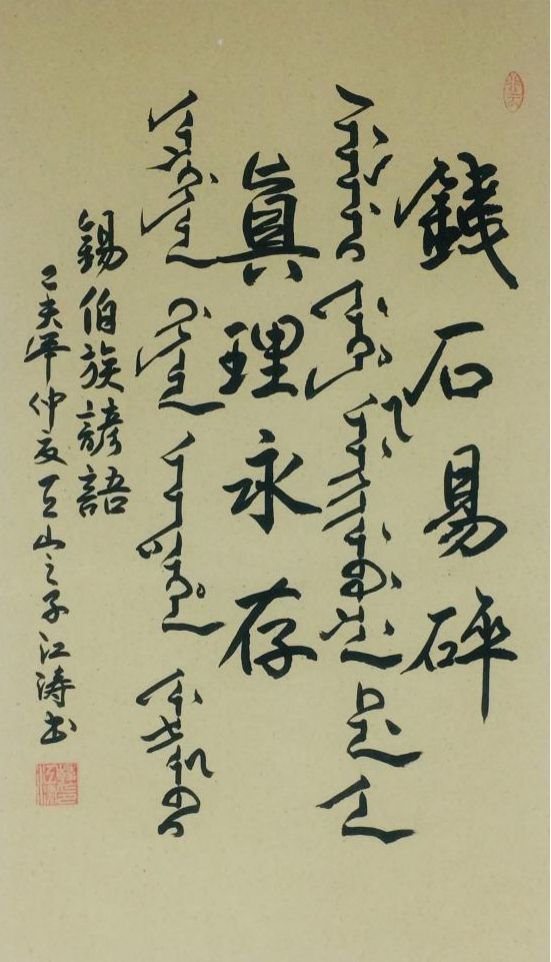 錫伯文書(shū)法:錢(qián)石易碎,真理永存