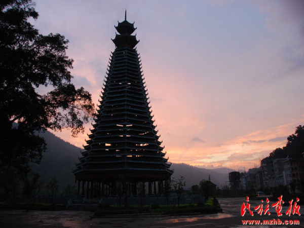 來(lái)到侗鄉(xiāng),無(wú)論站在寨子的哪邊望去,都能看到一座既像寶塔又像亭閣,既雄偉而又雅致的鼓樓。鼓樓是侗寨的標(biāo)志,千百年來(lái)鼓樓一直佇立在侗寨的中心位置,成為侗寨一道亮麗的風(fēng)景。