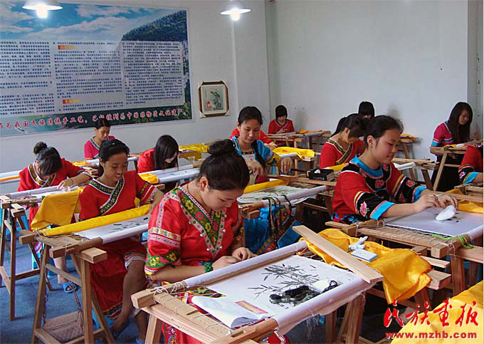 2015年,李紹玉榮獲年度“全國優(yōu)秀農(nóng)民工”。2016年,李紹玉成為重慶非物質(zhì)文化遺產(chǎn)——彭水苗繡的代表性傳承人。從一個打工女,到回家鄉(xiāng)帶動村民致富,再到成為全國人大代表,她說自己深感榮幸和責任重大?!翱偫韴蟾胬飳iT提到‘加強文物保護利用和文化遺產(chǎn)保護傳承’,我自己的成長,就得益于此。苗繡是苗族人民古老而美麗的技藝,我們有責任把它世代傳承下去。我們也要在苗族文化與手工藝術品融合上下功夫,使傳統(tǒng)工藝與市場結合、傳統(tǒng)元素與現(xiàn)代時尚相結合?!?/p>
