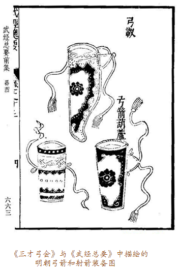 當(dāng)弓囊出現(xiàn)在眼前時,我們應(yīng)當(dāng)想到它的另一半——箭囊。實事上,古代盛裝弓箭的器物被稱為櫜鞬(gāo jiàn),櫜盛箭,鞬裝弓,多以皮革制作。比如明十三陵出土的萬歷皇帝陪葬品櫜鞬,就用皮革縫制,外敷黃色素緞,金繡龍紋,鑲嵌金飾件及各色寶石。一般來說,弓囊為上寬下窄的袋形,箭囊則為長方形。在蒙古語中,弓囊與箭囊合稱為“撒答”。因為“答”與“袋”讀音相近,所以元代的漢族作家便在作品中將之寫為“撒袋”。這樣,“撒袋”一詞便入了漢語詞匯,特指裝弓盛箭的袋子。