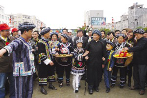 望謨布依寨老和小朋友迎接各位領(lǐng)導(dǎo)、朋友、嘉賓進(jìn)入活動會場