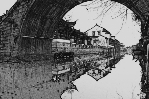 畫(huà)一條清澈的、緩緩流淌的河流。在河的上面,長(zhǎng)出一座彎彎的石拱橋,半圓形的橋洞倒映在河面上,剛好與倒影連成一個(gè)滿(mǎn)月一樣的圓,水長(zhǎng)流而“月”恒在,恒久地印在那清澈的水面上。給橋取一個(gè)好聽(tīng)的名字,叫作玉津橋。月圓之夜,在這河里有兩輪玉璧,一輪皎潔,是月亮的影子;一輪青幽,是橋的影子。在河的兩岸,西岸上長(zhǎng)出一排楊柳,婀娜飄拂;東岸上長(zhǎng)出一排楊樹(shù),筆直沖天。在楊樹(shù)的外面長(zhǎng)出一條路,沿著河水流淌的方向自北向南地行走。在路的外面長(zhǎng)出一片田野,在田野里長(zhǎng)出年復(fù)一年的莊稼。在田野的中間,長(zhǎng)出一簇一簇的村莊。在村莊的上面,長(zhǎng)出年復(fù)一年的炊煙。
