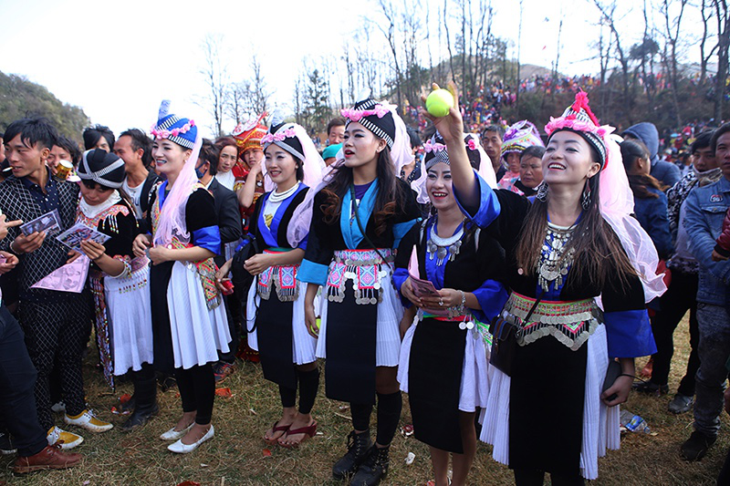由于在歷史上經(jīng)歷長時間、大范圍的遷徙,苗族文化形成了較強(qiáng)的環(huán)境適應(yīng)能力和流動變遷特征。節(jié)日作為民族文化的凝集點(diǎn),慶祝方式和形態(tài)也處于動態(tài)的演變和傳承之中。在大布紅的花山場,一個從老撾過來的苗族女子樂隊讓當(dāng)?shù)氐拿缱迦烁械胶闷妗f著同樣的西部苗語,卻穿著略顯不同的衣服。她們排成一行,教人們一來一往地扔繡包,一時間圍觀者無數(shù)。不消多久,女子樂隊手中的CD就在人群中銷售一空。