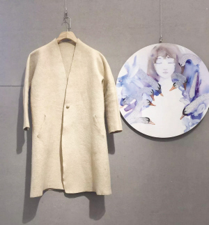 哈薩克族羊絨氈衣 秦娜兒·努爾蘭(參展人): 哈薩克人從搖籃到墳?zāi)苟茧x不開(kāi)氈子。我是在奶奶做的花氈上邁出人生第一步的。奶奶去世的時(shí)候,為了紀(jì)念她,我做了這件衣服。這是一件可以穿一輩子的、能承載得起一段記憶的衣服。如果奶奶在世,看到這件衣服也會(huì)贊嘆吧!