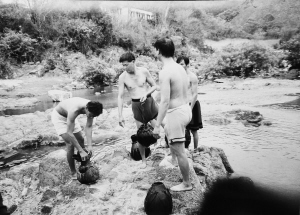 有一天,我在通什(今五指山市)的一條河邊,看見有幾個(gè)黎族人抱著大葫蘆過河。我趕緊拿出相機(jī),在河邊的大石頭間跳來跳去追拍。沒想到一不留神就跳空了,重重地摔在石頭上,造成了骨裂,當(dāng)時(shí)就不能動(dòng)彈了,在醫(yī)院里躺了好長(zhǎng)一段時(shí)間。