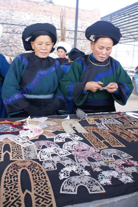 水族的民間工藝主要有剪紙、刺繡、染織、編織、銀飾加工、陶瓷、雕刻等,其中刺繡、染織和雕刻最為有名。水族的民間剪紙藝術歷史悠久,剪紙的內容多種多樣,有表現(xiàn)吉祥的龍、鳳、麒麟、梅花鹿,也有花鳥魚蟲等自然現(xiàn)象,造型千姿百態(tài),生動別致,栩栩如生。水族婦女的刺繡主要有平繡、馬尾繡、空心繡、挑繡、結線繡、泡繡等。水族的編織主要是竹編,他們用竹子編織成席子、躺椅、坐椅、斗笠、簸箕、籃子、魚簍、雞籠等日常用品。水族的雕刻工藝十分發(fā)達,主要有木雕和石雕。水族的木雕多見于房屋的窗花雕刻,床沿雕刻等,雕出的圖案諸如龍鳳呈祥、花鳥浮雕等都很美觀大方。