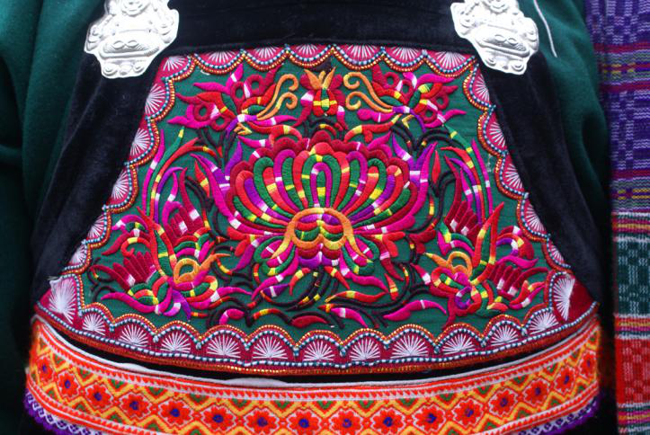 水族水家布水家布是主要居住在云貴高原東南部的曲嶺山脈以南、都柳江和龍江上游的水族居民使用的布料。為防毒蛇扎花邊大多數(shù)已婚婦女的衣服都有花邊。傳說很早以前,水族人民居住的地方山高林密、雜草叢生、毒蛇為患。一個名叫秀的水族姑娘,用彩色絲線在衣領、袖口、襟邊、褲腳上繡上一條條紅紅綠綠的花邊,又在鞋上繡上一些花草。她穿上這身衣褲和鞋子,獨自去深山密林中砍柴,果然毒蛇見她就逃走了。此后,水族婦女服裝繡花邊的習俗就逐漸傳承下來。