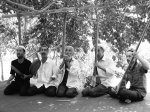 夏季的喀什,空氣中涌動(dòng)著濕潤(rùn)的氣息。這個(gè)玉石一般潤(rùn)滑的綠洲一派生機(jī)。在老城夯土滄桑的背影中,一陣憂傷的琴聲在城市上空回蕩,古老的《十二木卡姆》剎那間奏響耳邊?;匚吨鴦偛诺那俾暎杏X就是它——沙它爾,只有它的憂傷才會(huì)讓木卡姆如此動(dòng)人心弦。