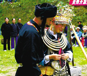 地處貴州省錦屏、天柱、劍河三縣交界處的九寨北部侗族社區(qū)山奇水秀,這里的婚戀習俗也獨具特色。當?shù)啬信嗄?,往往都會?jīng)歷一段神奇、浪漫的談情說愛過程。他們把談戀愛稱作“玩山”,把約會地點稱為“花園”,而相戀過程一般經(jīng)過邀約、初會、架橋、念想、成雙或分散等階段。