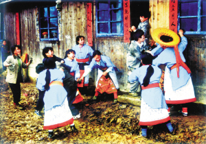花瑤山寨獨具個性的婚俗活動,除了對新人的美好祝福,也是妹子們亮衣裳、亮嗓音、亮智慧和尋覓心上人的大好時機?!白顗牡娜司褪敲饺斯?,我們姐妹們朝夕相處,從不分離,卻被他們一個個給騙走了!”山寨里的妹子都這樣懷恨媒人公(可誰也離不開他們喲)。在妹子們的眼中,前來送禮、接親的漢子,都是些不懷好意的媒人公,非教訓(xùn)一回不可——婚俗中的狂歡“打泥巴”便開始了。