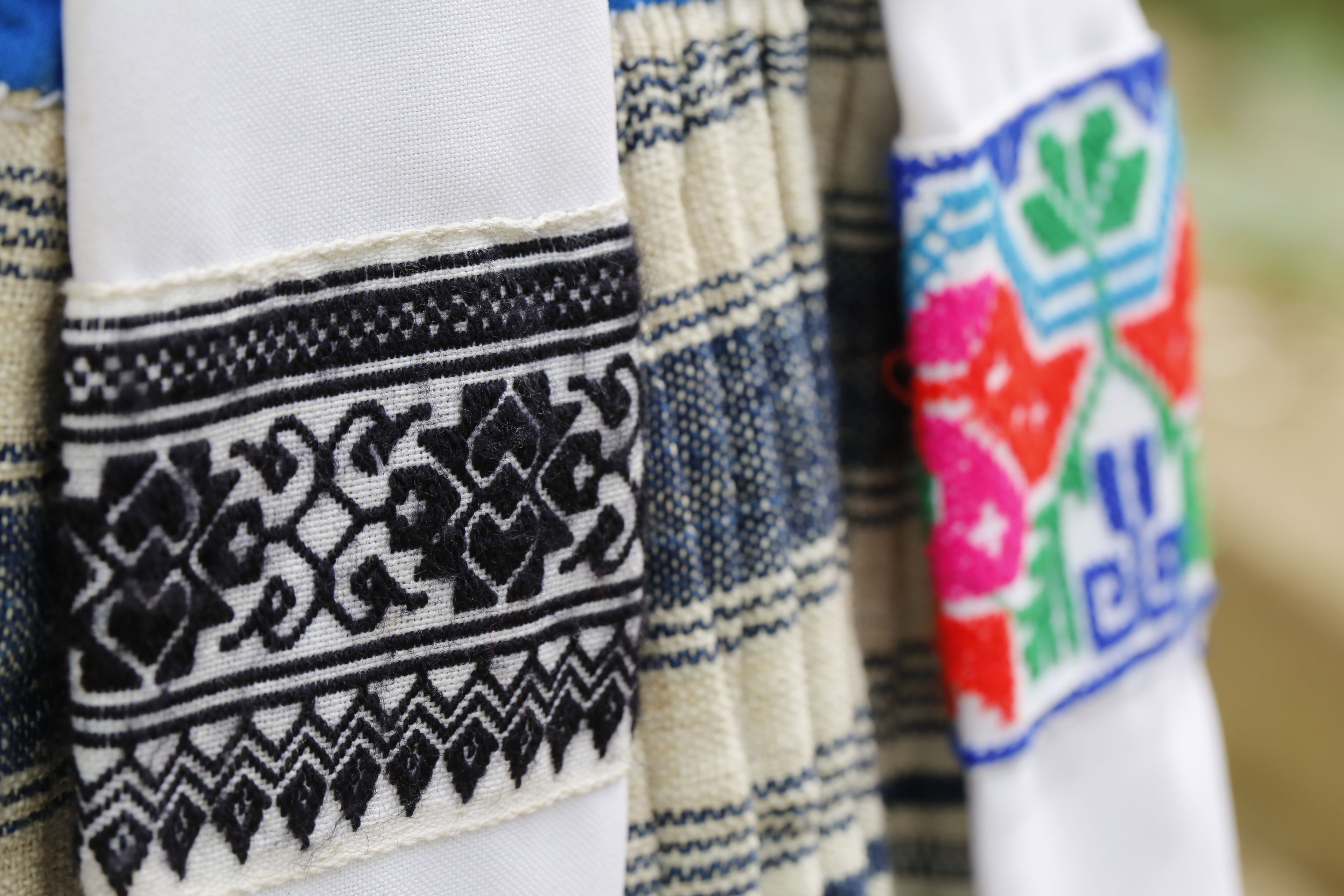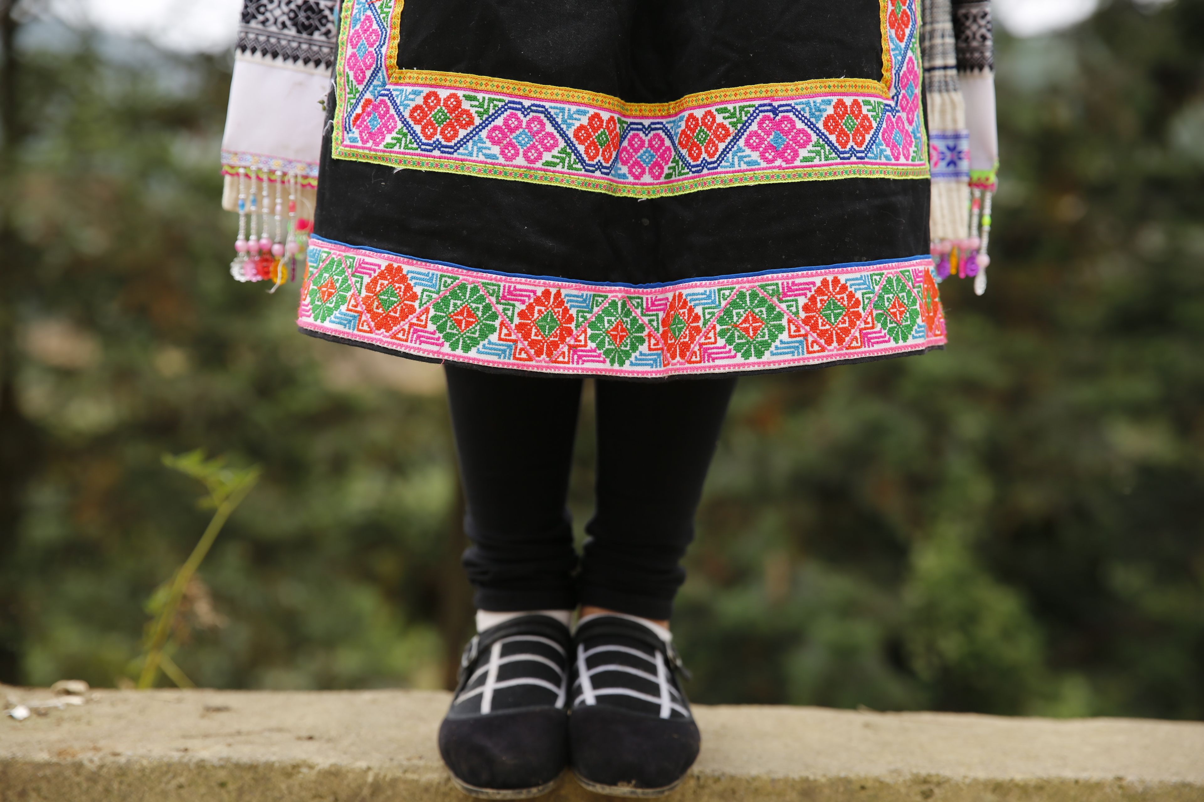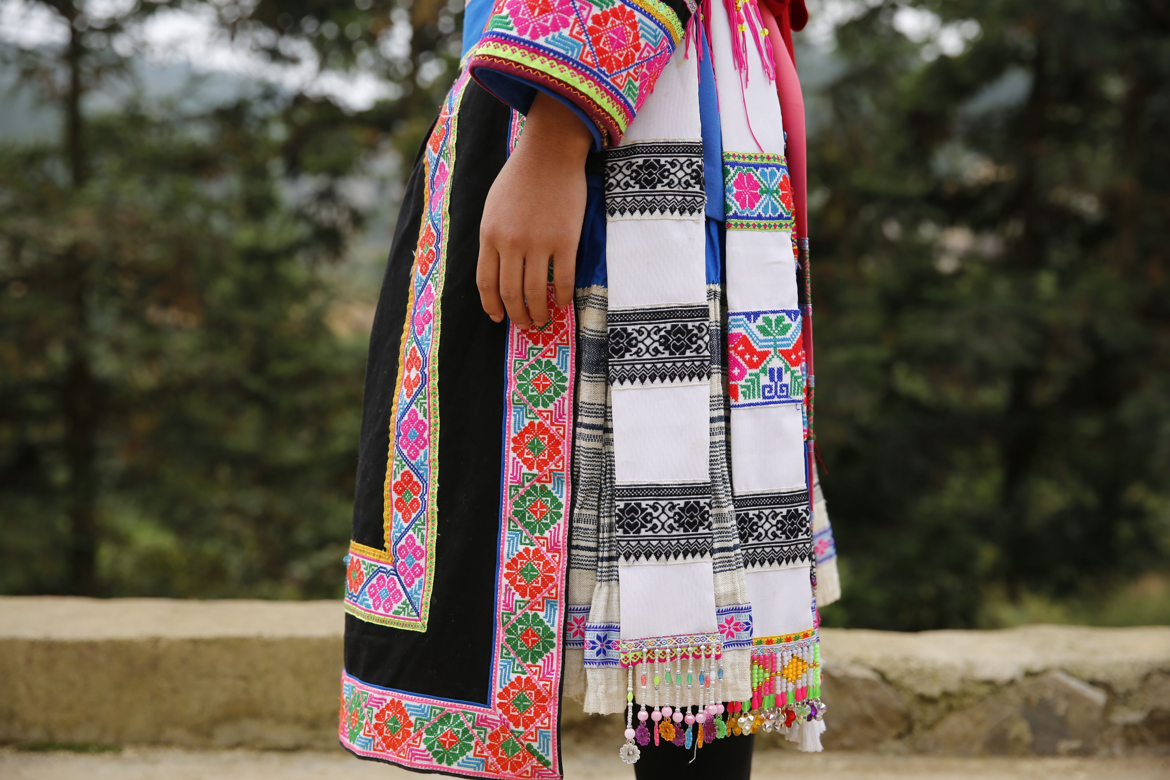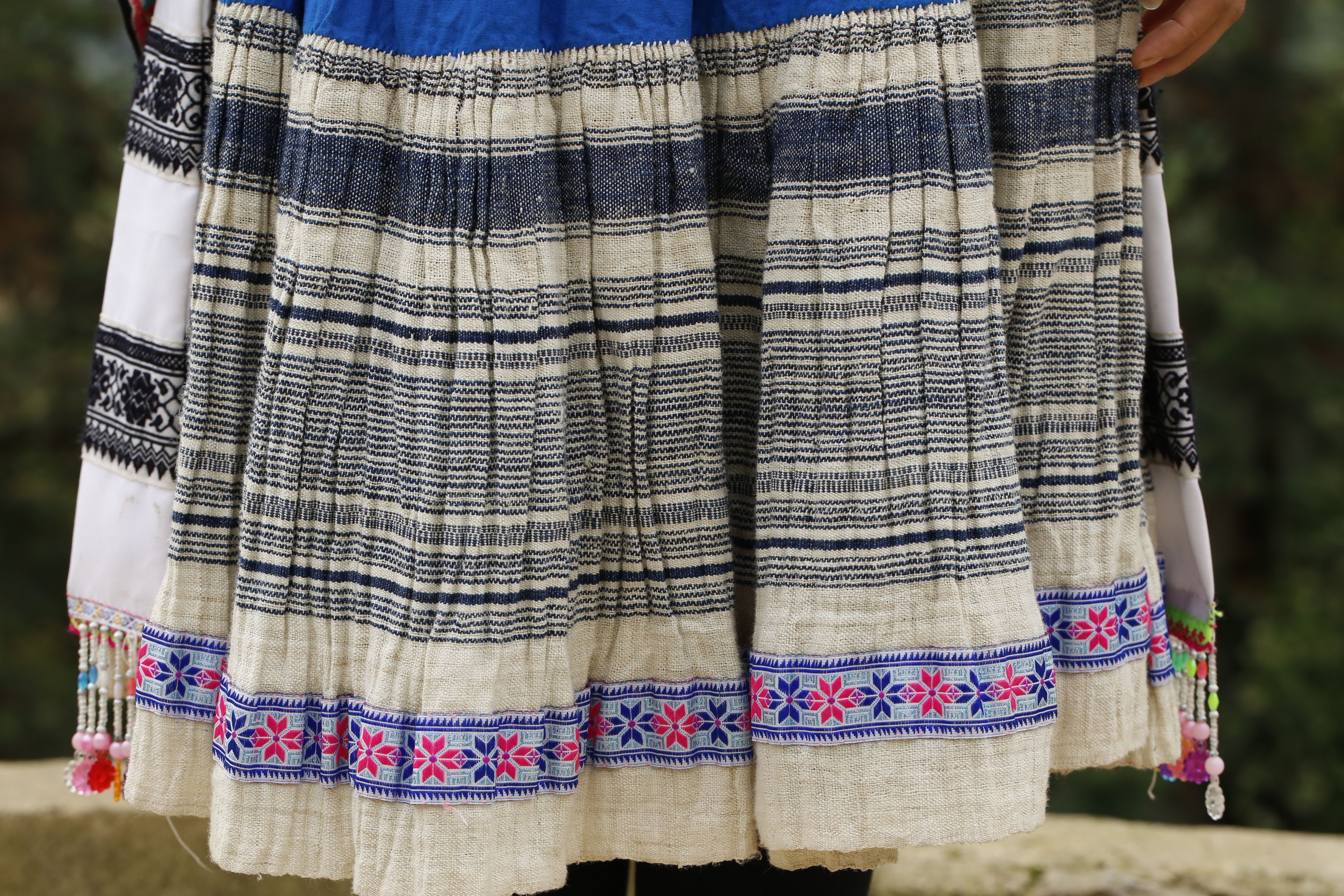苗族女子服飾花帶百褶裙-裙擺側(cè)面繡花及印染