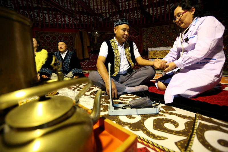 新疆阿勒泰哈薩克醫(yī)醫(yī)院醫(yī)生庫(kù)力木汗?托留汗在巡診