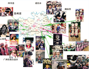 正所謂“一山分四季,十里不同俗。”在苗族內(nèi)部群體中,“盛飾”亦有著明顯的區(qū)域性特征,其風(fēng)格的形成與所在地域的自然環(huán)境,以及共同生活的民族都有著密切聯(lián)系。