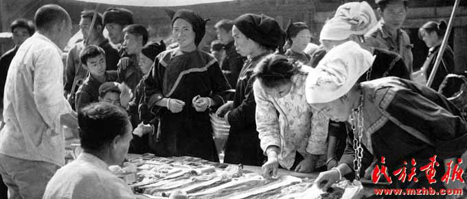 1980年,全國民族地區(qū)落實黨的民族政策,切實尊重少數(shù)民族的傳統(tǒng)習慣,轟轟烈烈地恢復民族傳統(tǒng)集市,以最短的時間恢復生產、發(fā)展自由貿易、豐富群眾生活。圖為貴州苗族農村市場開始活躍起來《民族畫報》1982年第1期