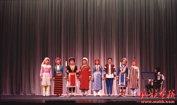第一屆全國少數(shù)民族文藝會演于1980年9月20日至10月20日舉行。迄今為止,全國少數(shù)民族文藝會演已成功舉辦五屆。全國少數(shù)民族文藝會演是展示黨的民族政策和民族文化建設偉大成就的舞臺,是展示少數(shù)民族自豪感和自信心的舞臺,是展示各民族文藝工作者卓越才華的舞臺,更是在中華民族大家庭里各民族“手足相親、守望相助”“共同團結奮斗,共同繁榮發(fā)展”的真實寫照。圖為第一屆全國少數(shù)民族文藝會演中女聲小組演唱《民族團結開新花》《民族畫報》1981年第1期
