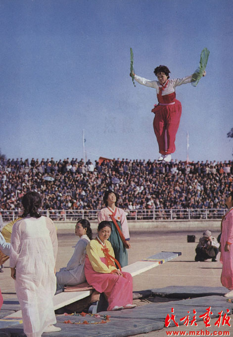 1982年9月2日至8日,第二屆全國少數(shù)民族傳統(tǒng)體育運動會在內蒙古呼和浩特舉行,圖為朝鮮族婦女展示傳統(tǒng)游戲項目——跳板。全國少數(shù)民族傳統(tǒng)體育運動會發(fā)掘了一大批新項目,并在探索普及與提高結合、群眾性與專業(yè)化結合、傳統(tǒng)體育與現(xiàn)代體育結合、民族性與世界性結合的道路上取得了可喜的進步,使少數(shù)民族傳統(tǒng)體育走上了普及、提高、規(guī)范、科學的道路。目前全國少數(shù)民族傳統(tǒng)體育運動會已經(jīng)舉辦了十屆《民族畫報》1982年第12期