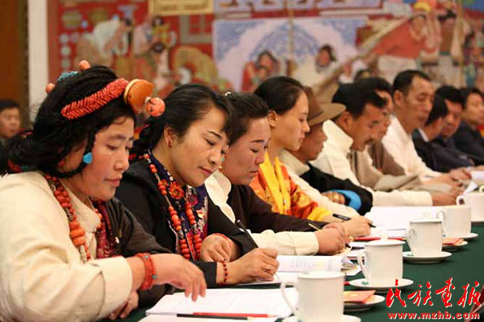 2017年10月18日,在中國共產黨第十九次全國代表大會上,習近平鄭重宣示:“經(jīng)過長期努力,中國特色社會主義進入了新時代,這是我國發(fā)展新的歷史方位?!笔糯髨蟾嬷?,習近平用五句話深刻揭示了新時代的內涵,指出這個新時代,是承前啟后、繼往開來、在新的歷史條件下繼續(xù)奪取中國特色社會主義偉大勝利的時代,是決勝全面建成小康社會、進而全面建設社會主義現(xiàn)代化強國的時代,是全國各族人民團結奮斗、不斷創(chuàng)造美好生活、逐步實現(xiàn)全體人民共同富裕的時代,是全體中華兒女勠力同心、奮力實現(xiàn)中華民族偉大復興中國夢的時代,是我國日益走近世界舞臺中央、不斷為人類作出更大貢獻的時代。圖為席黨的十九大的西藏自治區(qū)代表團代表在討論十九大報告?!睹褡瀹媹蟆?017年第11期