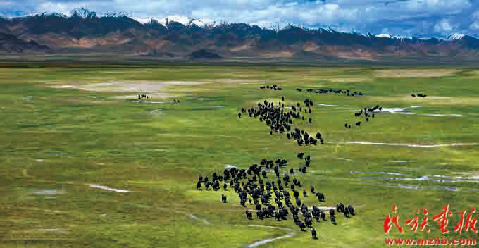 青海擔(dān)負(fù)著保護(hù)三江源、保護(hù)“中華水塔”的重大責(zé)任。為確?!耙唤逅驏|流”,青海各族人民積極投入生態(tài)文明建設(shè),三江源植被逐漸恢復(fù),野生動(dòng)物數(shù)量增加。圖為野牦牛奔跑在高原(民族畫報(bào)資料)