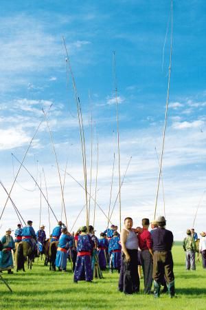 有些人和事是蒙古族所獨(dú)有的:迄今仍豎寫的文字,綜合了實(shí)用與建筑學(xué)美學(xué)原理的蒙古包,集合力量與技巧的套馬,歡樂盛會(huì)那達(dá)慕,蘊(yùn)含生存哲學(xué)的搏克,與國際象棋同理的蒙古象棋,好聽的長(zhǎng)調(diào)與馬頭琴,以萬物崇敬為核心理念的宗教文化……事實(shí)上,能夠讓草原持久保持綠色的內(nèi)因正是游牧文明的核心價(jià)值:和諧、包容、適度索取,樂觀、智慧、堅(jiān)韌向前。這些內(nèi)涵可以從蒙古族的物質(zhì)和精神生活包括那達(dá)慕中得到答案。
