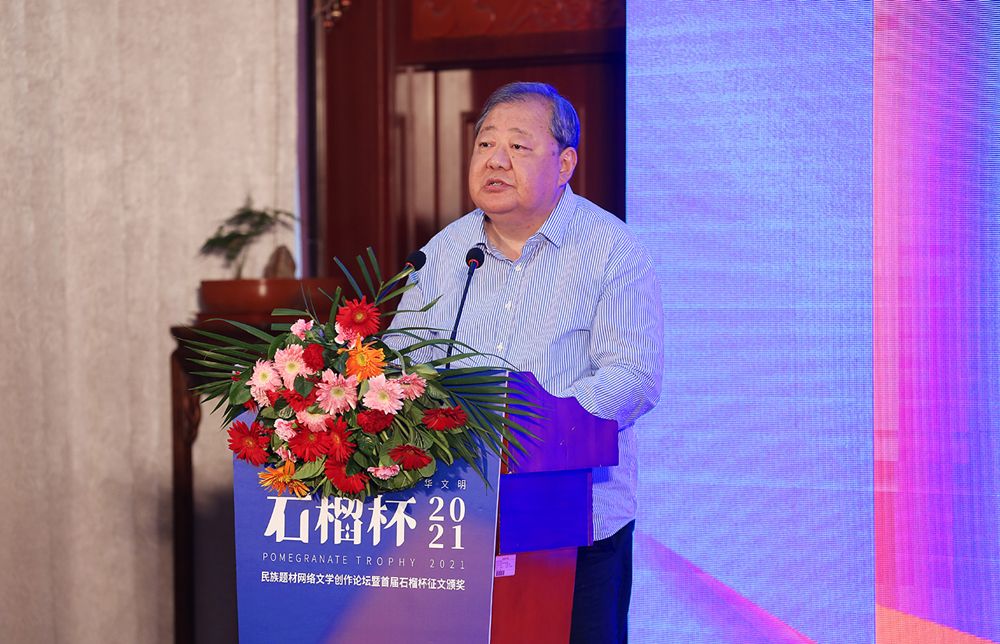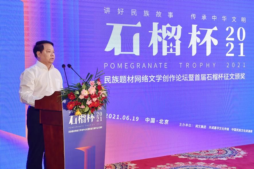 6月19日,民族題材網(wǎng)絡(luò)文學(xué)創(chuàng)作論壇暨首屆石榴杯征文大賽頒獎(jiǎng)典禮在京舉行。作為國家民委主辦的“中華民族全家?!毕盗谢顒又?,首屆石榴杯征文大賽得到了國家民委文化宣傳司和中國少數(shù)民族文化藝術(shù)促進(jìn)會的指導(dǎo)與支持,由閱文集團(tuán)聯(lián)合天成嘉華文化傳媒、中國民族文化資源庫、中國民族文化資源網(wǎng)共同舉辦。本屆大賽以“講好民族故事 ,傳承中華文明”為主題,涌現(xiàn)出眾多弘揚(yáng)民族精神、表達(dá)文化自信、傳播正能量的作品。經(jīng)過專家推薦及嚴(yán)格評審,《草原有座蒙古包》、《走西口之天山行》、《彩云微光》等三部作品獲“最具民族風(fēng)采獎(jiǎng)”,《神藏》、《歡想世界》、《爛柯棋緣》、《時(shí)光和你都很美》、《恰似寒光遇驕陽》、《黎明醫(yī)生》、《暖君》、《驚雷》、《大訟師》、《消防英雄》等十部作品獲“優(yōu)秀作品獎(jiǎng)”。所有獲獎(jiǎng)作品都將收錄入中國民族文化資源庫。中國作家協(xié)會副主席、書記處書記吉狄馬加表示,本屆石榴杯大賽是在黨和國家長期以來堅(jiān)持的對民族文化、少數(shù)民族作家創(chuàng)作和民族題材創(chuàng)作的大力扶持下,依托網(wǎng)絡(luò)文學(xué)平臺,將文學(xué)作品與影視作品改編、游戲、動漫產(chǎn)品制作結(jié)合起來,探索的一條發(fā)展民族文化的新路,具有開創(chuàng)意義。