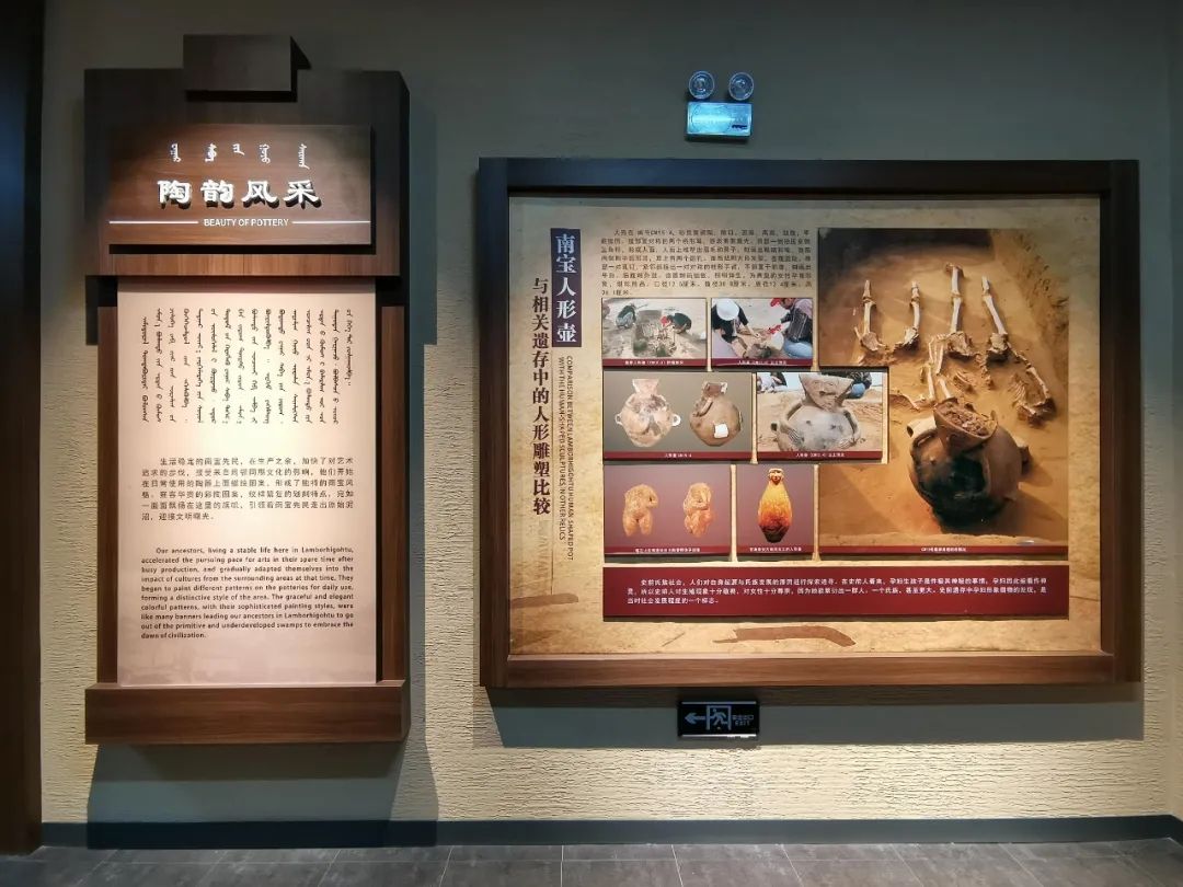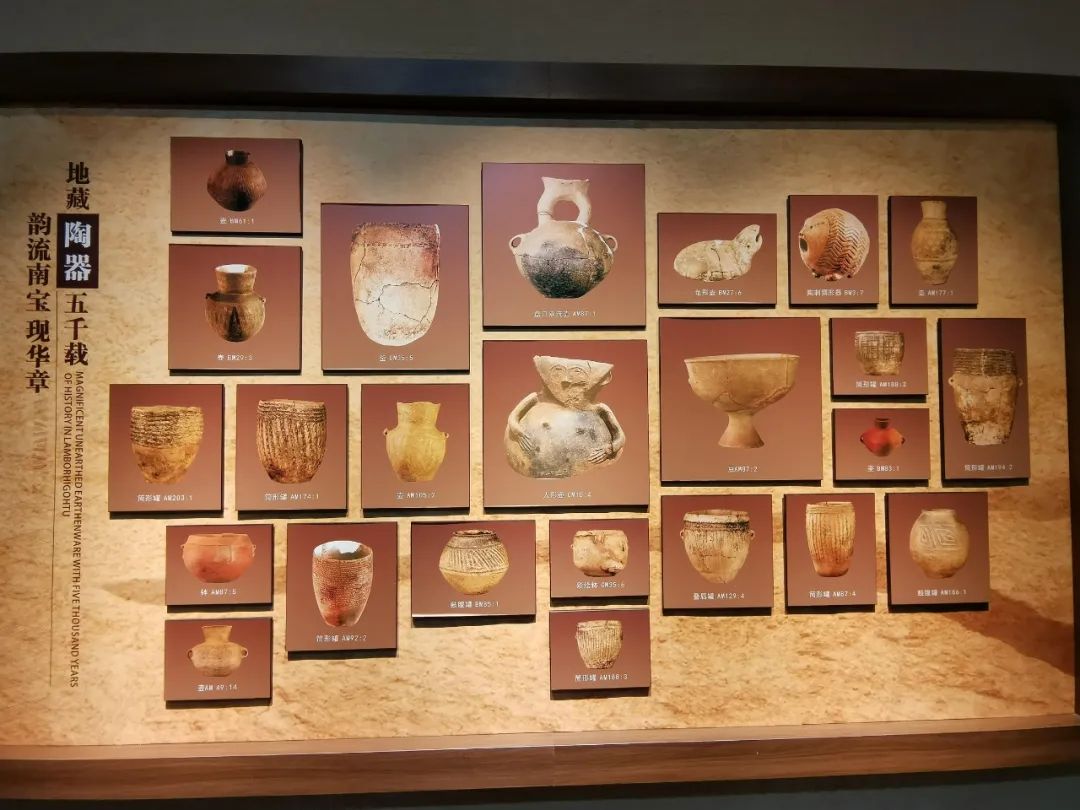 陶韻風采;生活穩(wěn)定的南寶先民,在生產(chǎn)之余,加快了對藝術(shù)追求的步伐,接受來自周鄰同期文化的影響,他們開始在日常使用的陶器上面描繪圖案,形成了獨特的南寶風格。雍容華貴的彩陶圖案,紋樣繁復的劃刻特點,宛如一面面飄揚在這里的旗幟,引領(lǐng)著南寶先民走出原始泥沼,迎接文明曙光。