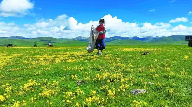 自那以后,才培和更求拉毛大手牽小手,從這個牧帳撿到那個牧帳,從日出撿到日落……更求拉毛已記不清到底撿了多少塑料袋、廢鐵皮、飲料瓶。但在她看來,嘉塘的遠(yuǎn)山和近水,終有一天會如藍(lán)天白云般凈澈,這也成了她和父親的共同夢想。