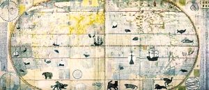 李之藻年輕時(shí)就對(duì)實(shí)學(xué)頗感興趣,曾自行繪制過(guò)明朝兩京十三省的地圖。見(jiàn)到利瑪竇用西法繪制的世界地圖后,李之藻敏感地意識(shí)到,這個(gè)地圖的繪制方法與中國(guó)傳統(tǒng)的“計(jì)里畫(huà)方”方法不同,是“取天文以準(zhǔn)地度”,用經(jīng)緯度確定地理方位。對(duì)利瑪竇的學(xué)問(wèn)一見(jiàn)而傾心的李之藻,每天都要到利瑪竇的公寓學(xué)習(xí)地理、天文知識(shí),每次都要花上四五個(gè)小時(shí)。1602年,李之藻與利瑪竇結(jié)合中西繪圖技術(shù),合作繪制了一版世界地圖《坤輿萬(wàn)國(guó)全圖》,這幅地圖改變了當(dāng)時(shí)通行的將歐洲居于地圖中央的西方繪圖格局,把子午線向西移動(dòng)170度,從而使東亞的中國(guó)居于地圖的中央,并且全圖標(biāo)上了詳細(xì)的漢字標(biāo)識(shí),這是中國(guó)最早的世界地圖。