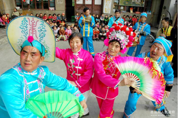 利川燈歌,又名燈調(diào),始于清代初期,已有300多年的歷史,是人們逢年過節(jié)之時(shí)以彩龍船為道具,畫地為臺(tái)、亦唱亦演的民間藝術(shù)形式。2011年5月,利川燈歌被國務(wù)院公布為第三批國家級(jí)非物質(zhì)文化遺產(chǎn)名錄。