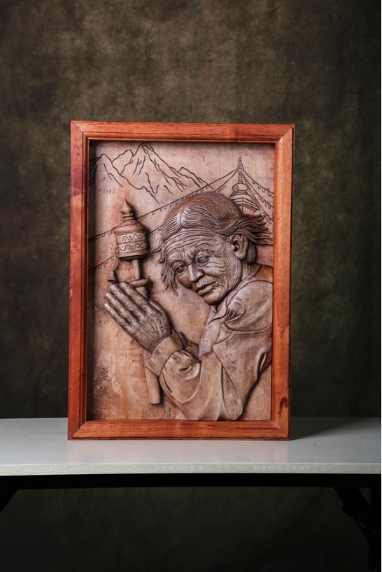 《門神》、《福滿門》這是劍川木雕在繼承傳統(tǒng)基礎(chǔ)上,對傳統(tǒng)的一種大膽嘗試性的發(fā)揚創(chuàng)作。這些作品的特點是,既保留了嫻熟的傳統(tǒng)木雕技藝,只是通過巧妙的組合,在現(xiàn)成的古老大門上雕出“門神”或用舊門框作為木雕作品的邊框,從而產(chǎn)生一種新的意趣,這種創(chuàng)意很適合當下都市的審美要求,也是劍川木雕未來發(fā)展中很值得提倡的新思路。木雕復制《張勝溫畫卷》
