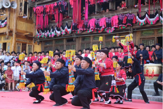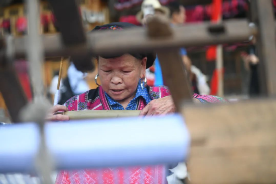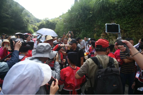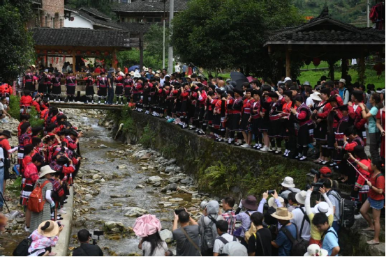 曬衣節(jié)當天還進行了嗩吶鑼鼓迎賓、瑤嫂長發(fā)梳妝展示、“抬金狗”送祝福、紅瑤服飾加工展示、紅瑤集體婚禮等活動,豐富多彩的民俗文化、濃郁的民族風(fēng)情,讓各地游客流連忘返。