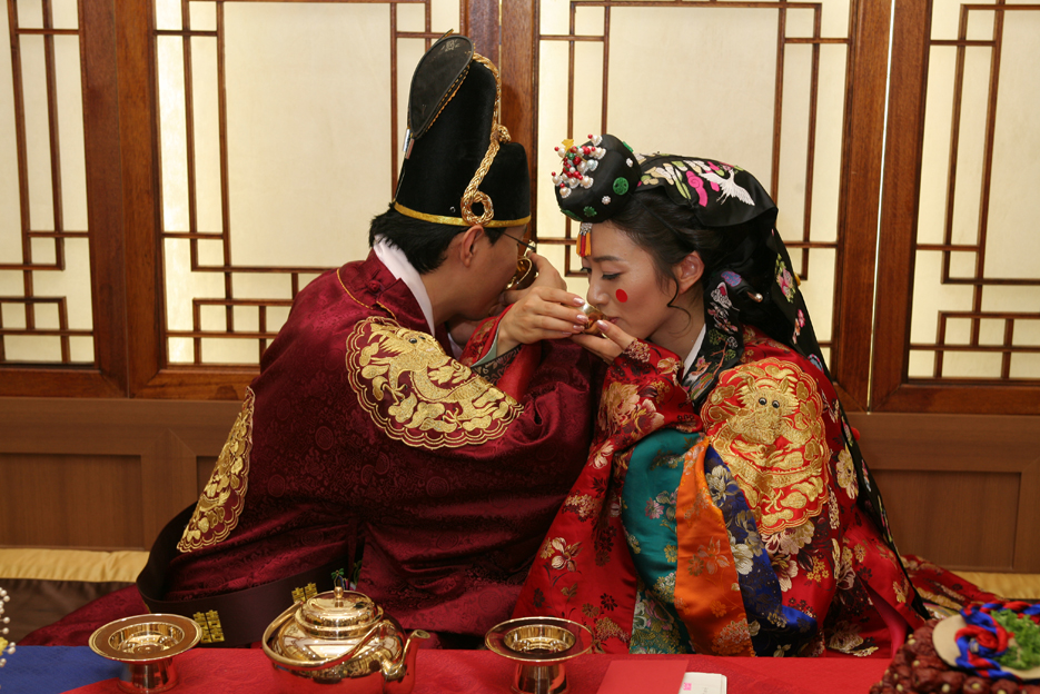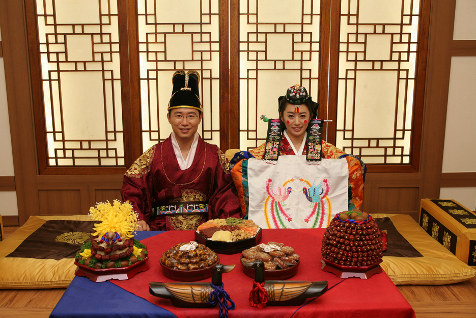 在過去,朝鮮族婚俗沿用中國古代的六禮習(xí)俗,非常傳統(tǒng)復(fù)雜,禮儀繁多。現(xiàn)如今朝鮮族人民的婚俗雖然受到時代變遷的影響,進(jìn)行了一定的簡化,但是整體流程和習(xí)俗仍保留了朝鮮族特有的特點(diǎn)。從婚前、結(jié)婚到婚后都有著特定的程式,主要有納彩、納幣和迎親3個程序,在這些程序中又貫穿著多種禮儀。