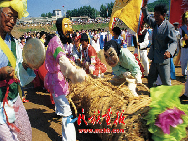 拔河是每年的農(nóng)歷正月十五舉行,最早多在民族運(yùn)動(dòng)會(huì)上進(jìn)行,以自然村為一個(gè)參賽單位,同臨近的村進(jìn)行比賽。首先要準(zhǔn)備拔河繩,繩有雄繩和雌繩之分,用稻草和藤條搓成。拔河繩有20?30厘米粗,長(zhǎng)30?40米,由雄繩和雌繩兩股繩組成,然后進(jìn)行拔河比賽,雌繩獲勝說明當(dāng)年農(nóng)業(yè)大豐收,因此雄繩有時(shí)會(huì)故意輸給雌繩?!?/p>