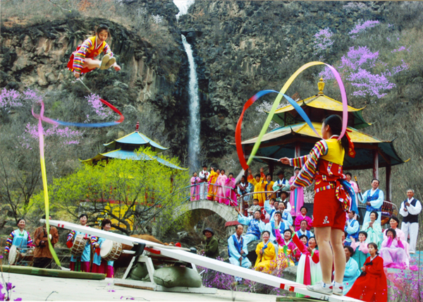 朝鮮族人民喜歡運(yùn)動(dòng),愛(ài)好體育,在長(zhǎng)期的勞動(dòng)、生活中創(chuàng)造出了為大家喜聞樂(lè)見的體育項(xiàng)目。摔跤、跳板、拔河、蕩秋千都是其中的代表。