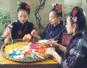 侗族分布于貴州、湖南、廣西三省毗鄰地區(qū)的南方少數(shù)民族,居住在黔、湘、桂等省區(qū)的毗連地區(qū),其中以貴州省人口最多。古代文獻中稱“駱越”、“僚”、“侗蠻”。他們主要從事山壩農業(yè),兼營林業(yè)和漁獵,手工業(yè)發(fā)達。出產“香禾糯”(有“糯中之王”之稱)、“稻花鯉”、油茶。
