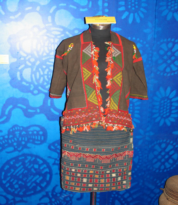 在服飾工藝方面,秦漢時(shí)期,黎族先民已有了原始的服飾。當(dāng)時(shí)最流行的一種服裝是“貫”和“穿胸”,即貫服或貫頭服?!短接[》卷七九○引《異物志》載:“穿胸人,其衣則縫布二尺,幅合二頭,開(kāi)中央,以頭貫穿胸不突穿。”《漢書·地理志》也記載:“(海南島)民皆服布如單被,穿中央為貫頭?!?000多年以后,這種衣服在黎族潤(rùn)方中仍保留下來(lái)。