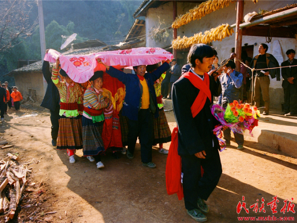 幾年前的一天,我坐火車、搭汽車、然后步行十幾里崎嶇山路,來(lái)到海拔2500米的四川涼山彝族自治州德昌縣達(dá)巴洞鄉(xiāng)團(tuán)結(jié)村,參加傈僳族姑娘張正秀的婚禮。大山深處的這場(chǎng)婚禮經(jīng)過(guò)神秘的刮臉、席地婚宴、奇異請(qǐng)拜、通宵打跳等一系列儀式,宣告一個(gè)傈僳族新家庭的誕生。