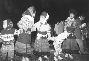 傈僳族跳舞經(jīng)常是通宵達(dá)旦,其一種說法是:由于山上居住條件差,遠(yuǎn)遠(yuǎn)近近村寨的人們來到了這里,主人無法提供大多數(shù)人睡覺和休息取暖場所,山上這能跳舞的半年的時間里氣候寒冷,跳著、活動著方能御寒;另一說法是:由于人們平時很難相聚在一起,人們利用這種機會盡情狂歡,青年們則通過跳舞談情說愛。