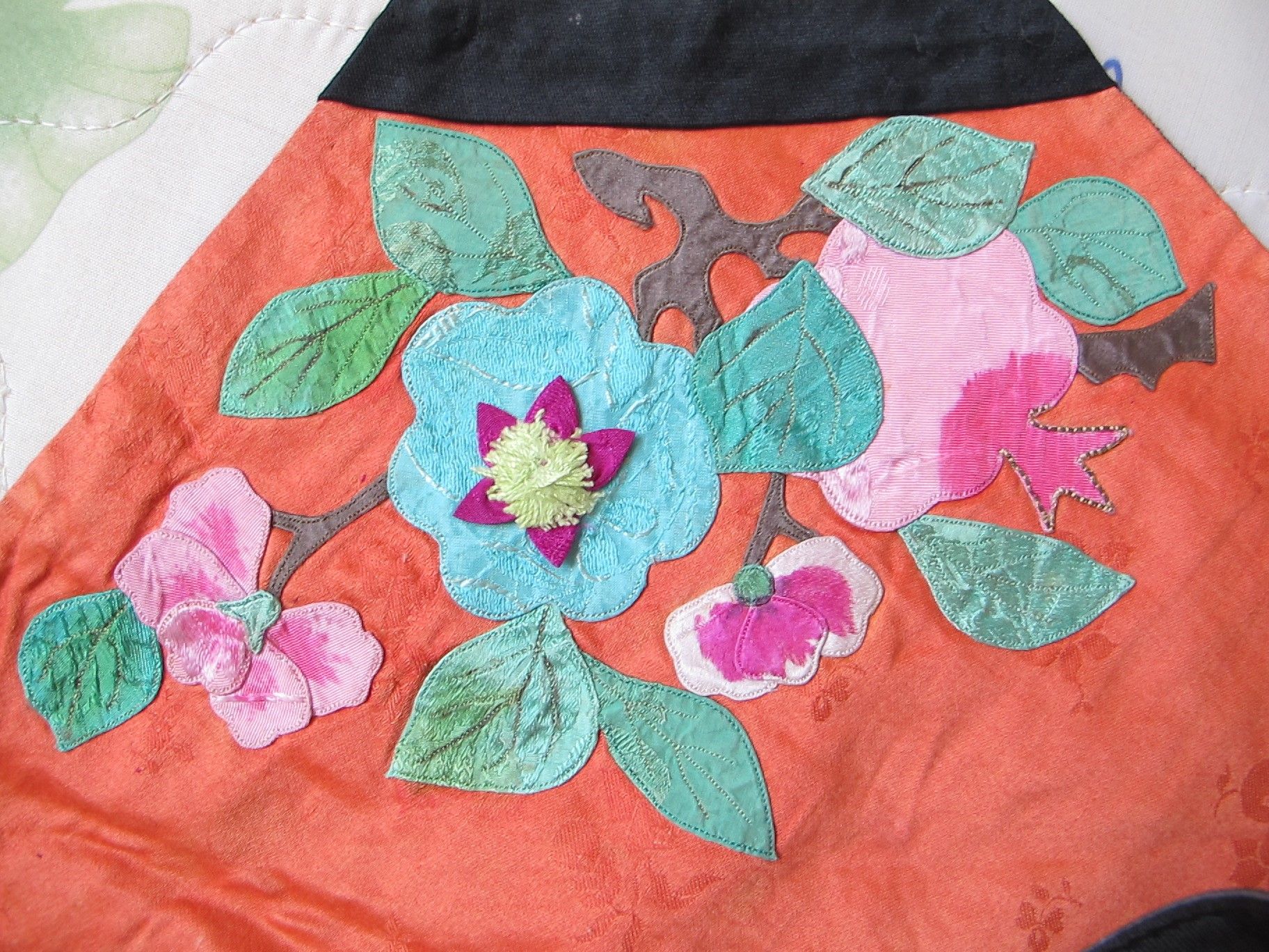 第四步是刺繡。機(jī)繡作品雖然操作簡(jiǎn)便,速度快,工作效率高,但由于不能隨時(shí)調(diào)換粗細(xì)不同的機(jī)針或不同顏色的機(jī)線(xiàn),圖案比較簡(jiǎn)單,繡法也不能象手工繡那樣靈活多變,所以東鄉(xiāng)族婦女對(duì)能充分施展本領(lǐng)的手工繡情有獨(dú)鐘。