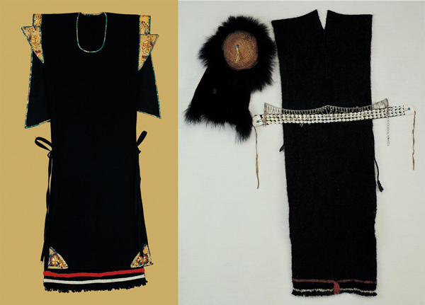 珞巴族的民族服飾已列入國家級非物質文化遺產(chǎn)名錄。圖為珞巴族民國時期貫頭式氌氌女服與男服,中央民族大學民族博物館館藏。