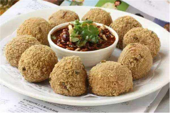 沿山豆腐丸子:豆腐丸子是沿山特色小吃,將豆腐抓成豆腐碎,把蔥或韭菜切成碎末放入豆腐碎中,同時(shí)加入鹽和五香粉,反復(fù)用手揉豆腐碎,把揉好的豆腐團(tuán)成丸子的形狀,放入油鍋中炸至變色撈出,即可食用,食用時(shí)外酥里嫩,深受游客的喜愛(ài)。