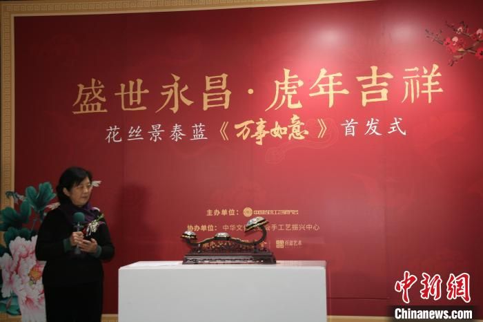 程淑美與花絲景泰藍(lán)新作《萬事如意》在首發(fā)現(xiàn)場 李妮 攝
