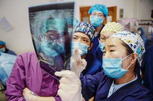北京援藏醫(yī)生韓同英(右一)在北京市組團幫扶的拉薩市人民醫(yī)院對當(dāng)?shù)蒯t(yī)生進行傳幫帶。
